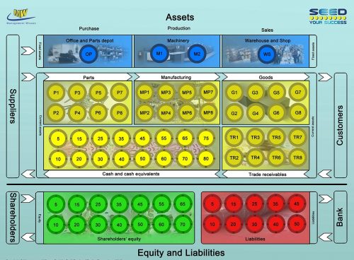 is a board-based business game designed to teach the fundamentals of business administration in connection with the business accounting.